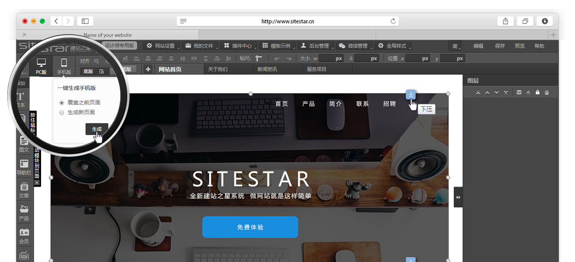 企業(yè)網(wǎng)站建設(shè)用建站之星,讓您的網(wǎng)站和微信公眾號(hào)無(wú)所不能做企業(yè)網(wǎng)站、個(gè)人網(wǎng)站、網(wǎng)店、商城、手機(jī)微信網(wǎng)站樣樣行,小程序、APP一鍵生成即刻擁有!內(nèi)置 超多豐富網(wǎng)絡(luò)營(yíng)銷推廣工具